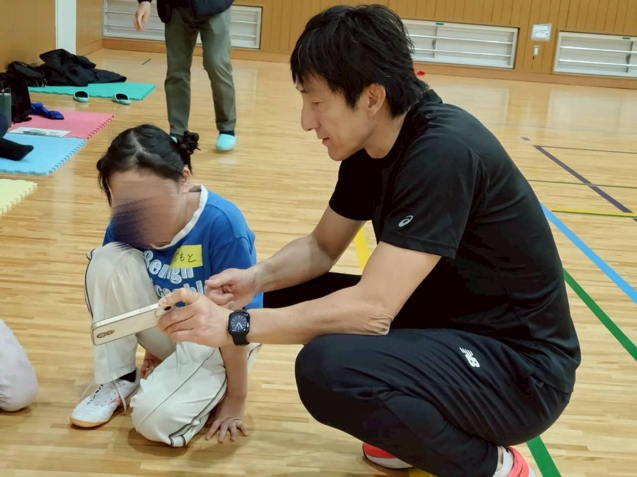 朝原宣治さんによる「短距離フォーム指導」では、足の設置や腕の振りをメインにミニハードル等を使用した指導を行っていただきました!